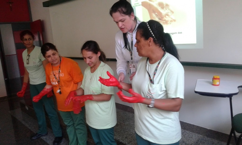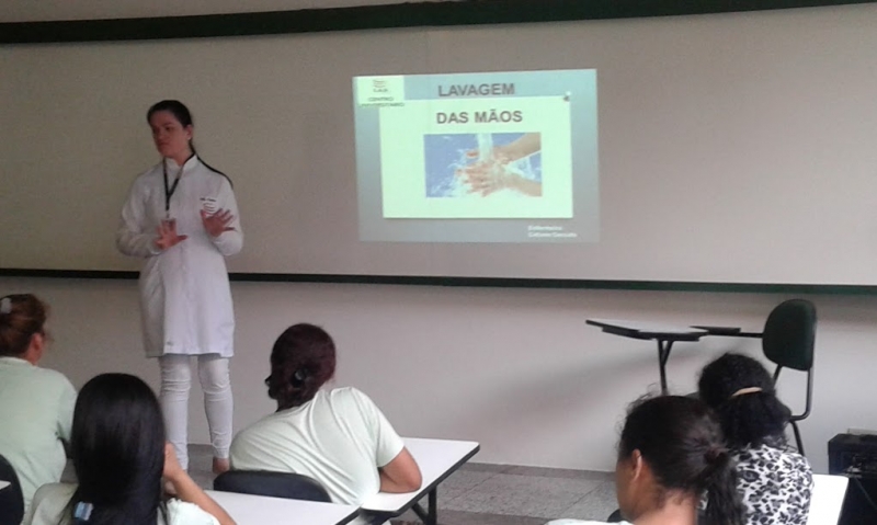 O minicurso foi ministrado pelo Técnico de Segurança do Trabalho, Maurício Aparecido Boeira, e pela Enfermeira, Catiane Ceccato. ?O principal objetivo foi conscientizar os colaboradores do serviço de apoio sobre o uso consciente das luvas de proteção, principalmente. Mostramos para eles análises de laboratório, que foram feitas em seus próprios materiais de limpeza?, contou Maurício. A palestra faz parte da educação em saúde, em que os colaboradores do serviço de apoio receberam orientações de cuidado e uso de EPI?s, melhoria na higienização das mãos através da técnica correta.,evitando desta forma doenças que podem ser transmitidas pelo contato com as mãos?, complementou Catiane.