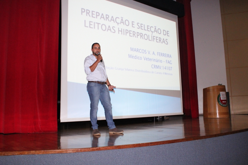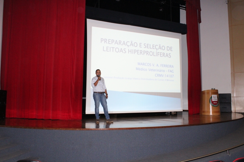 No pós-feriado, os alunos de Medicina Veterinária do Centro Universitário FAG puderam acompanhar a continuidade da Semana Acadêmica do curso. Na quinta-feira (03), O palestrante Antonio Cabuim ministrou no Hospital Veterinário a palestra "Análise de Catálogo de Vendas de Sêmen". À noite, no Anfiteatro, Ana Claudia de Souza Andrade falou sobre "Principais Retroviroses em Gatos" e, na sequência, o Médico Veterinário e egresso do Centro FAG, Marcos Vinícius Ferreira, ministrou a palestra com o tema "Preparação e Seleção de Leitoas Hiperprolíferas". "Fiquei muito feliz pelo convite do professor Adriano, Coordenador do curso, e não pensei duas vezes para aceitar. Vejo como uma grande oportunidade e também com gratidão poder retornar à faculdade que me projetou para a Medicina Veterinária. Sem dúvidas, foi a realização de um sonho. Espero voltar mais vezes para passar um pouco do que acontece a campo no setor de suinocultura", falou Marcos Vinícius.