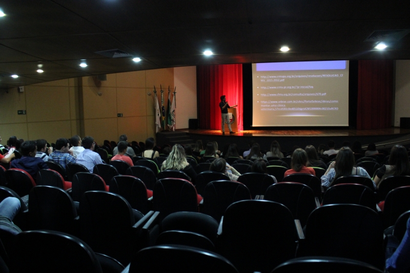 Na sexta-feira (04), a Semana Acadêmica foi encerrada com mais três atrações: no Hospital Veterinário aconteceu palestra sobre "Novos Equipamentos para Clínica Animal". À noite, foi a vez das palestras "Clínicas Veterinárias", com Juliano Pompeu, e "Tratamentos Podais em Vacas de Leite", com André Maciel de Souza. Juliano Pompeli falou sobre o que um interessado em abrir uma clínica vai precisar para começar e explicou também sobre as novas normas e estruturas. "A minha fala com eles foi desde o atendimento até a estrutura física em relação aos equipamentos. Durante o período acadêmico o aluno faz uma analogia com o que o professor fala e com o que eles ouvem fora de sala de aula. Nas palestras é possível associar as duas coisas e chegar numa conclusão", explicou.