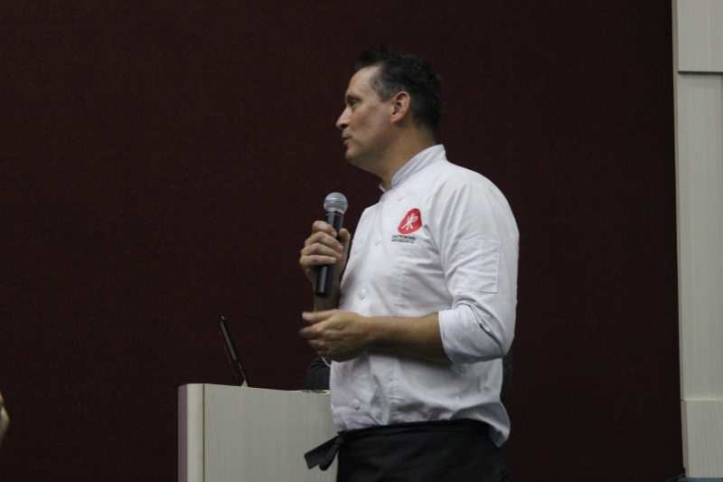 O renomado Chef de Cozinha, Beto Madalosso, veio a Cascavel para ministrar um módulo do curso de MBA em Gastronomia para o Programa de Pós-Graduação do Centro Universitário FAG. A atividade foi realizada em dois dias, na sexta (28) e no sábado (29). Na sexta-feira, acadêmicos do curso de Nutrição também puderam participar da aula com o tema "Nascido e Criado num Restaurante", realizada no auditório do bloco IV. "Nós procuramos sempre preparar os nossos alunos, é importante pra eles esse momento e esse contato com um profissional como o Beto", declarou a coordenadora de Nutrição, Nanci Berto.
