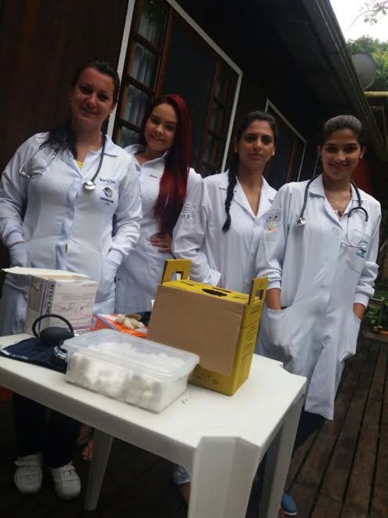 Os alunos de Enfermagem, por sua vez, fizeram trabalho voluntário, atendendo à população das Ilhas, um público com grande carência de acesso à saúde. Eles aferiram a pressão, fizeram exames de glicose e orientaram os moradores sobre as principais enfermidades provocadas por parasitas.