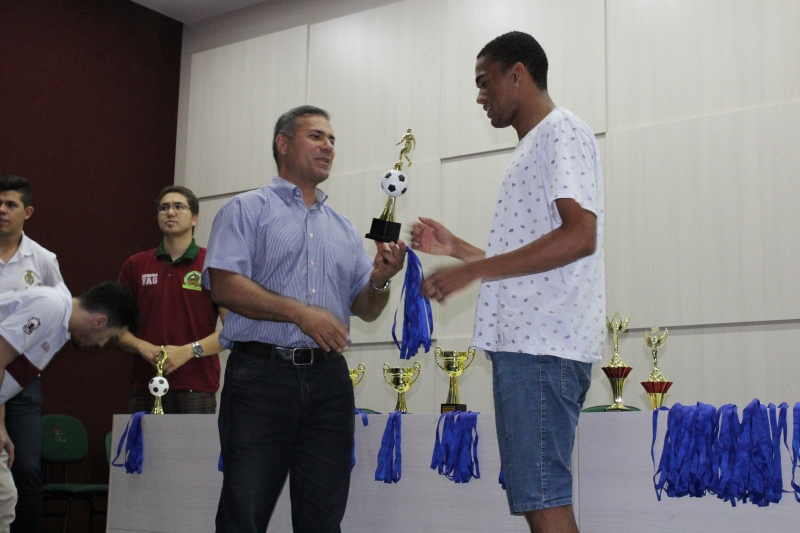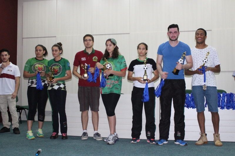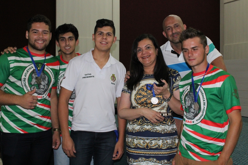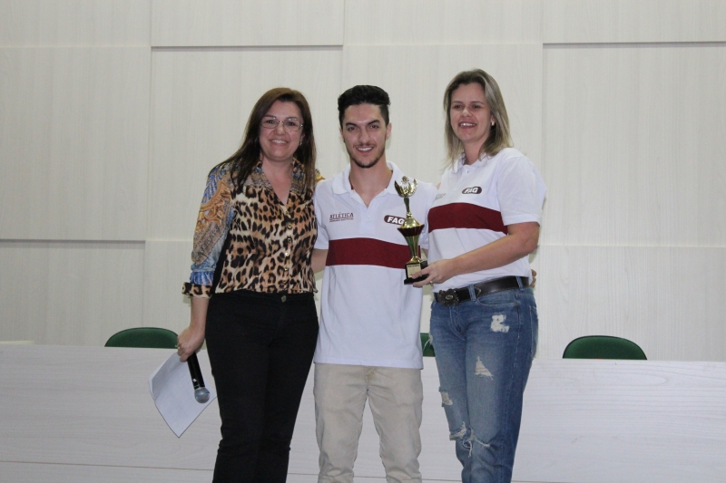 Acadêmicos que participaram do JIC, Jogos Internos dos Calouros e do INTERFAG, Jogos das Atléticas da FAG, receberam os troféus entregue pela comissão organizadora representada pela professora Patrícia Radaelli e pelos coordenadores: Vitor de Souza de educação Física; Leda Paes Walcker de Fisioterapia; Débora Felten de Engenharia Civil e também pelo Vice-Reitor do Centro FAG, Sérgio De Angelis.