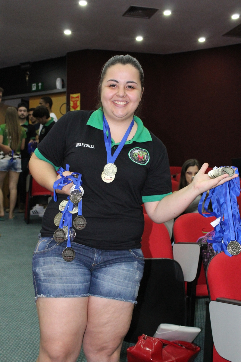 A acadêmica Magda Paula dos Santos Ribeiro é apaixonada pelo Atletismo, e não é à toa que ficou em 1º lugar nos 100m, 400m, Salto em Distância e no revezamento dos 400m. "O Atletismo é o meu esporte preferido, foi sim a prova que eu mais me empenhei e cheguei num ótimo resultado. Já estou na expectativa dos próximos jogos, é legal ver o esporte unindo as Atléticas e outras pessoas", contou. "Foi maravilhoso ver o empenho dos estudantes em organizar e também em participar das duas competições. As premiações coroam essa dedicação. Os que receberam os troféus representam todos que participaram?, expressou a Coordenadora do NAAE, Patrícia Radaelli.