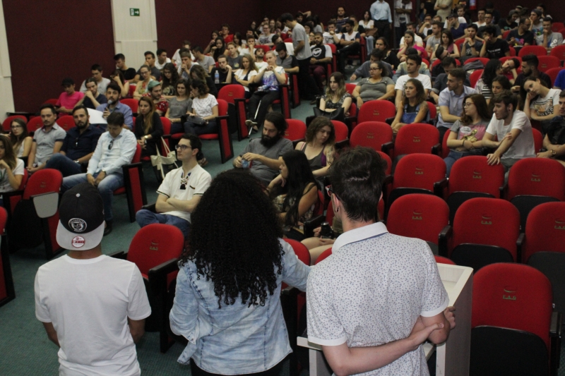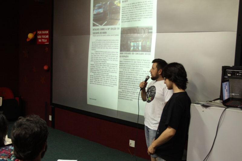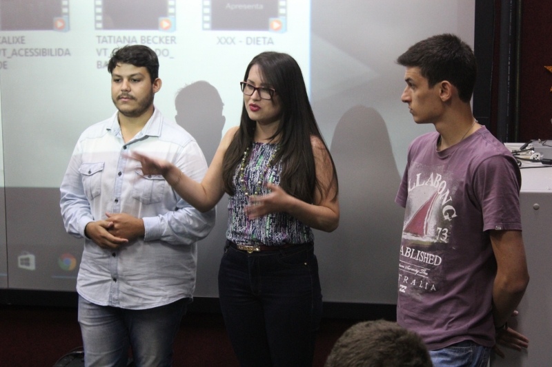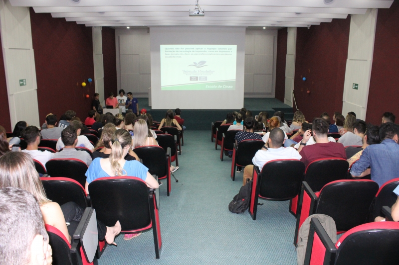 Após a noite de lançamento do Congresso Regional Sul 2018 da Intercom realizada na segunda-feira (21), acadêmicos dos cursos de Jornalismo, Publicidade e Propaganda e Design Gráfico, continuaram durante a semana com a programação do Seminário de Práticas. Nos dias 22 e 23 os alunos puderam apresentar os trabalhos realizados em diferentes disciplinas durante o semestre. O curso de Jornalismo se apresentou na Sala 3D do Bloco II e os cursos de Publicidade e Propaganda e Design Gráfico se apresentaram no Auditório do Bloco IV