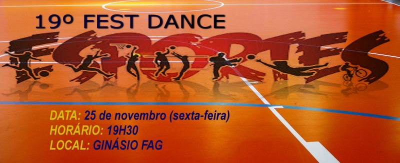 O curso de Educação Física da FAG promove, amanhã (25), a 19ª edição do Fest Dance. O evento é organizado pelos acadêmicos do 2º período, na disciplina de Atividade Rítmica Expressiva, sob a orientação da professora Isabela dos Anjos, e acontece no Ginásio de Esportes, com início às 19h30.