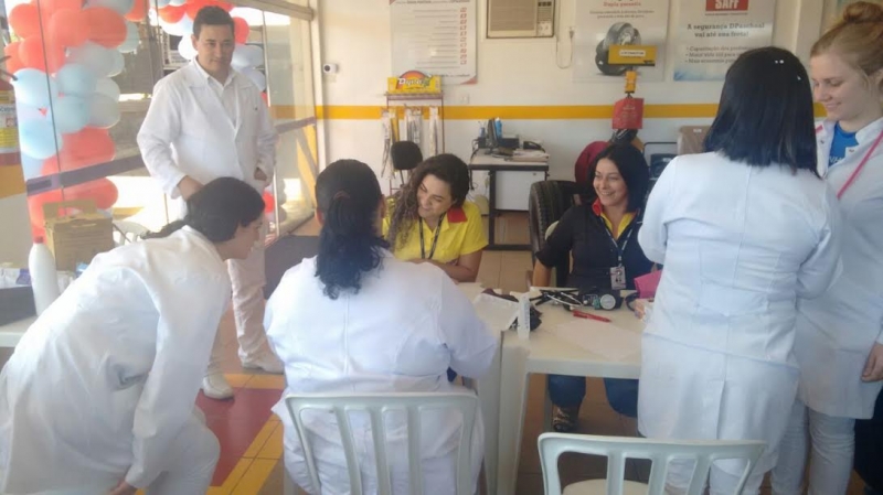 Alunos do 6º período do curso de Farmácia do Centro Universitário FAG participaram no dia 18 de novembro de uma atividade de saúde na Dpaschoal, prestadora de serviços automotivos. A empresa promove o Pit Stop Verde, evento voltado à responsabilidade ambiental e que, nesta edição, teve como foco a saúde.