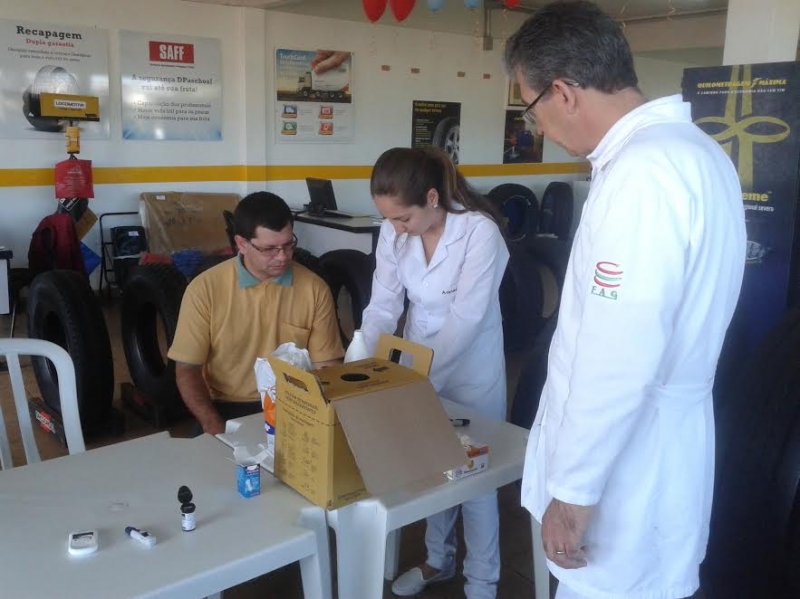 O mote do evento foi: "Cuidamos do seu caminhão, enquanto você cuida da sua saúde". A ideia foi chamar o cliente até a empresa, para que seu caminhão passasse por uma revisão e, enquanto aguardava, o motorista passava por exame de glicose e aferia a pressão - tarefas desenvolvidas pelos alunos do Centro FAG. Funcionários também participaram da atividade. "A gente achou fantástica a parceria. Os alunos nos ajudaram muito, foram super atenciosos, ficamos muito agradecidos com a participação", elogiou Cleverson Sacardo, Coordenador de Vendas da Dpaschoal.