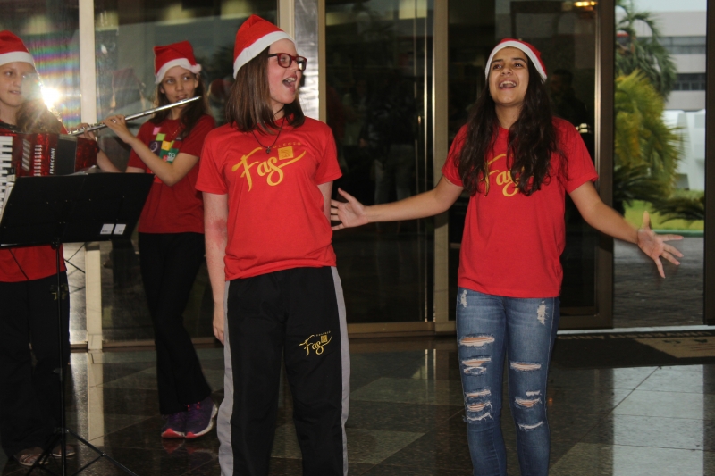 Alunos do Colégio FAG espalham espírito natalino pelo Centro Universitário