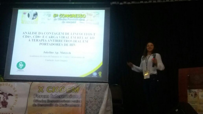 O curso de Farmácia apresentou 18 trabalhos no evento, com destaque para a aluna Jakeline Aparecida Matzech, que teve sua pesquisa selecionada entre os 6 melhores trabalhos do Congresso, concorrendo com pesquisas de Mestrado e Doutorado.