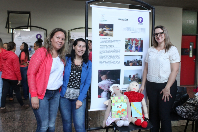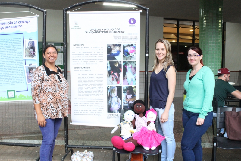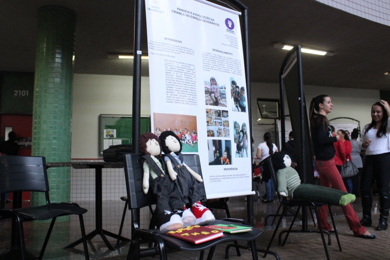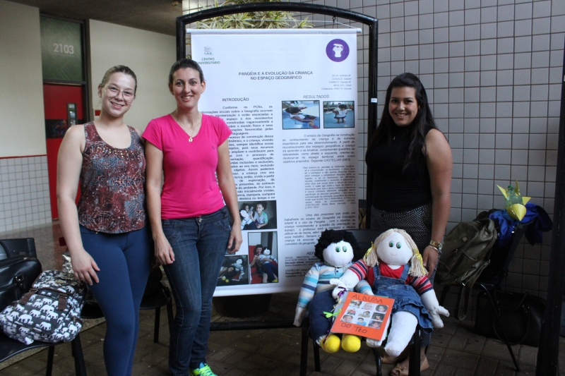 Para a comunidade acadêmica, o resultado foi apresentado a partir de uma exposição de Banners e bonecos, no Espaço de Convivência do Bloco 2. A atividade faz parte do projeto integrador da disciplina Fundamentos Teóricos e Metodológicos do Ensino da Geografia, ministrada pela professora Silvana Krefta Rodrigues. "A proposta do Projeto Pangéia é trabalhar o ensino da geografia na Educação Infantil, proporcionando aos educandos o desenvolvimento da criança em vários aspectos como: lateralidade, equilíbrio, noção de espaço e tempo e socialização", explicou.