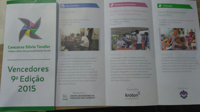 O professor Sérgio de Angelis complementa afirmando que a premiação é resultado da sintonia afinada que o Centro FAG tem com a comunidade. "Desenvolvemos trabalhos contínuos e sistemáticos de grande abrangência e poucas pessoas conhecem. Esse vídeo ajudou a disseminar um pouco do que é desenvolvido aqui", finaliza.
