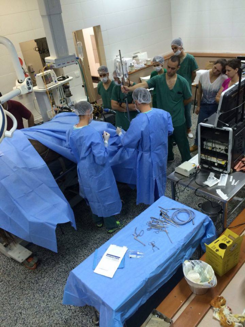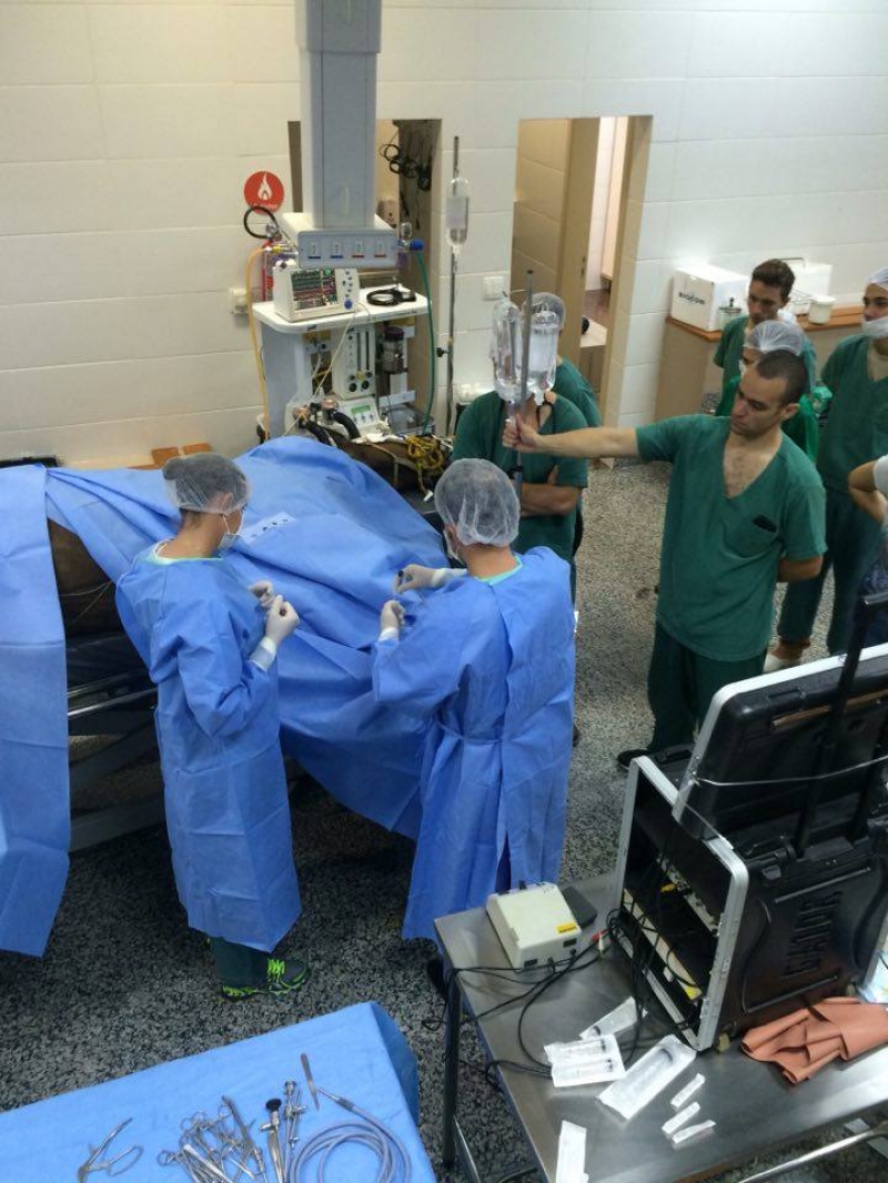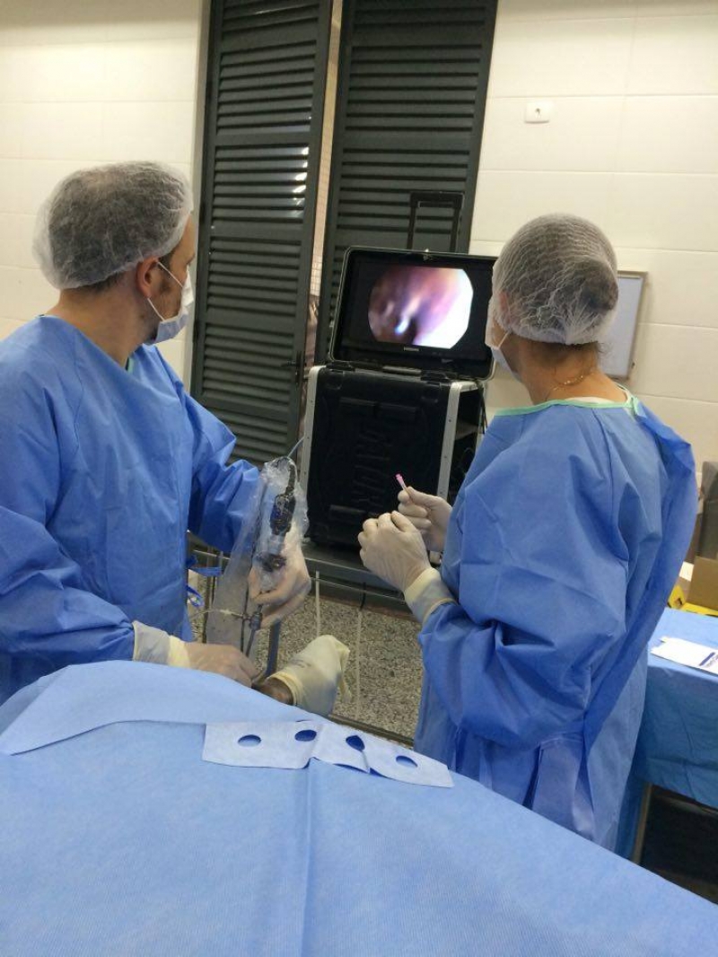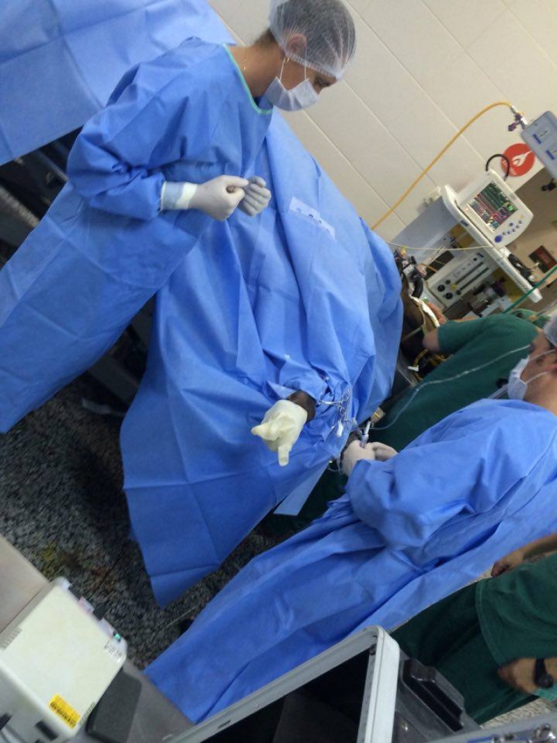 A égua de alto valor foi internada na última segunda-feira (12), para permanecer em jejum e ser preparada para a operação. O procedimento cirúrgico aconteceu na terça-feira (13) e foi conduzido pelo cirurgião da Universidade Federal do Paraná, Peterson Triches, que veio de Curitiba para a operação, com apoio da equipe do Hospital Veterinário FAG. A égua passou por uma Artroscopia para a remoção do fragmento. "É uma cirurgia pouco invasiva, com anestesia geral. São feitas duas incisões, bem pequenas, de menos de 1 cm: em uma é colocada uma lente com luz e uma câmera, e por outro orifício entra o material cirúrgico utilizado. Acompanhamos tudo por um monitor. A cirurgia demorou cerca de 50 minutos. Mas foram três horas no total, entre a sedação e a remoção do animal até a baia", contou o Diretor do Hospital, Rennê Gomiero.