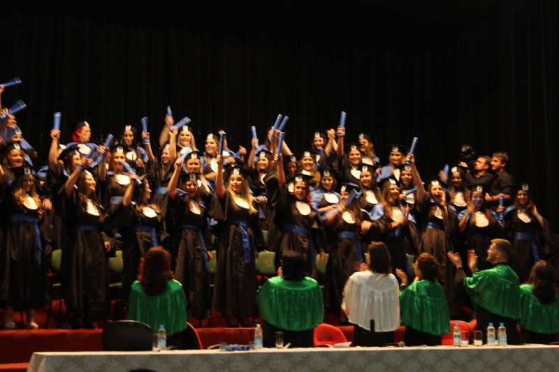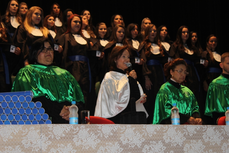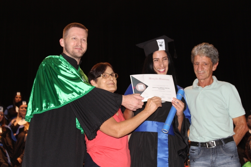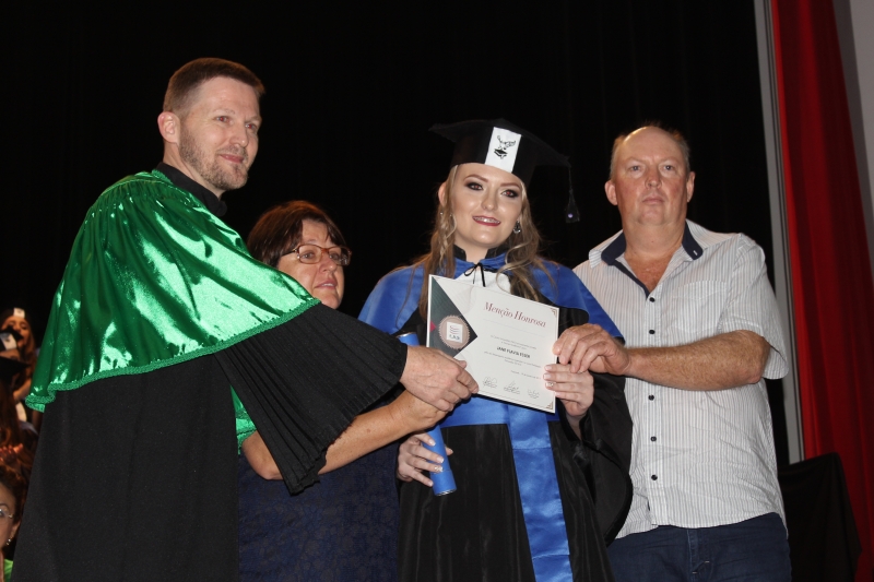 Para a formanda Geovana Santorum foi um momento de muita emoção. "O sentimento é de muita alegria e satisfação em realizar um sonho. Mais uma etapa concluída na minha vida", falou. Já a formanda Jeenifer Paola Rettmann Berto relata como foram os quatro anos na faculdade. "Foi muito corrido e superamos muitas dificuldades. Eu me dediquei muito, era o meu sonho. Agradeço a ajuda da minha família e dos meus amigos que foram sensacionais nessa caminhada", declarou.