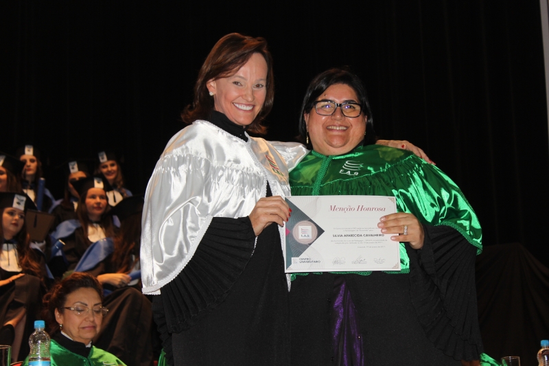 Para realização da sessão solene de Colação de Grau, compuseram a mesa dos trabalhos a Pró-Reitora Administrativa do Centro Universitário Assis Gurgacz, Sr.ª Jaqueline Aparecida Gurgacz Ferreira; a Secretária Acadêmica, Maria Madalena de Camargo; o Coordenador do curso de Pedagogia, Prof. Paulo Cesar Fachin; a Paraninfa do curso, Profª. Silvia Aparecida Cavalheiro; a Patronesse do Curso, Profª. Silvana Rodrigues Krefta, e a homenageada como Nome de Turma, Profª. Marilene Lemes Marques Salvati.