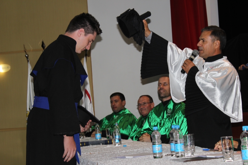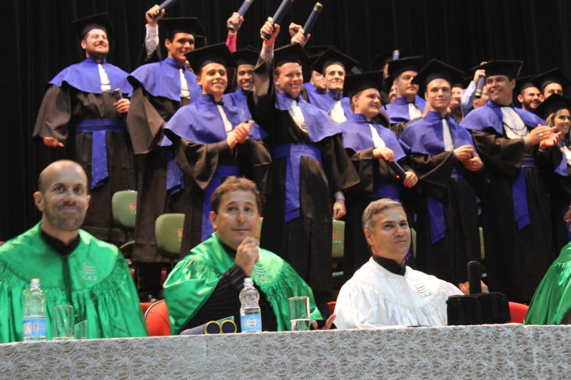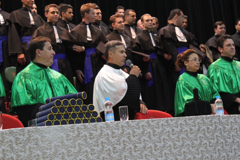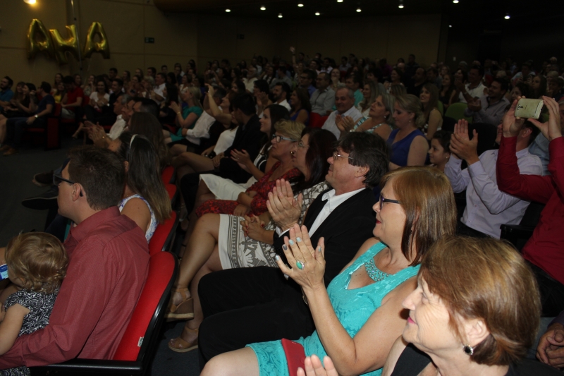 Emoção na mesa de honra e na plateia também. Marta Gentelini Paese, mãe do formando Alexandre Paese Lauxen, não escondia a satisfação em ver o filho concluindo essa nova etapa. "O corpo docente auxilia, dá suporte, orientação e nós, pais, ajudamos com as cobranças sobre o rendimento do filho", opina.