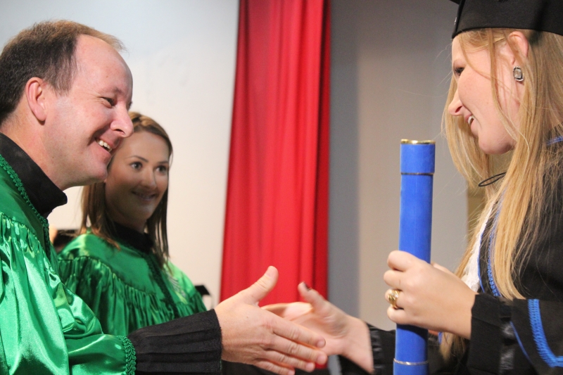 Denise Karina Teixeira Negrão e Vanessa Aparecida Anderle Zaiatz receberam a láurea acadêmica, pois obtiveram a maior média de notas do curso. "Hoje fazendo uma retrospectiva do período que passei na faculdade, percebo que todas as dificuldades que enfrentei durante toda a caminhada rumo à minha formação me fortaleceram e me moldaram, tornando-me uma mulher mais forte e uma profissional mais focada. E, ser laureada ao lado da minha dupla de trabalhos e grande amiga Denise Karina Teixeira Negrão tornou o sabor dessa conquista ainda melhor, a láurea veio como recompensa por todo nosso esforço e dedicação, nos mostrando que todas as nossas abdicações valeram a pena!", expressou Vanessa.