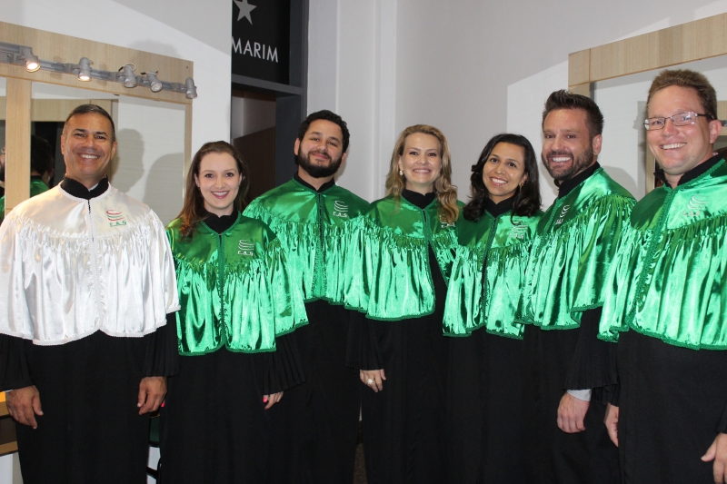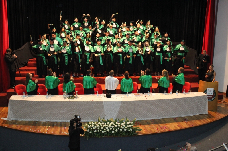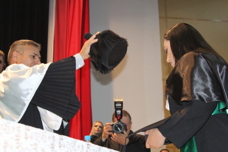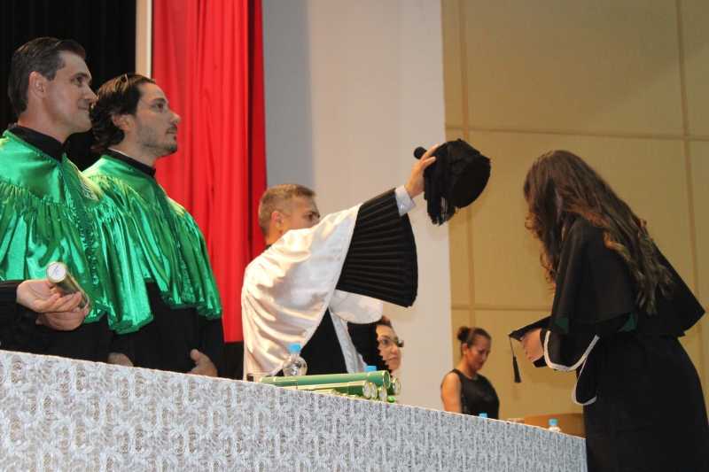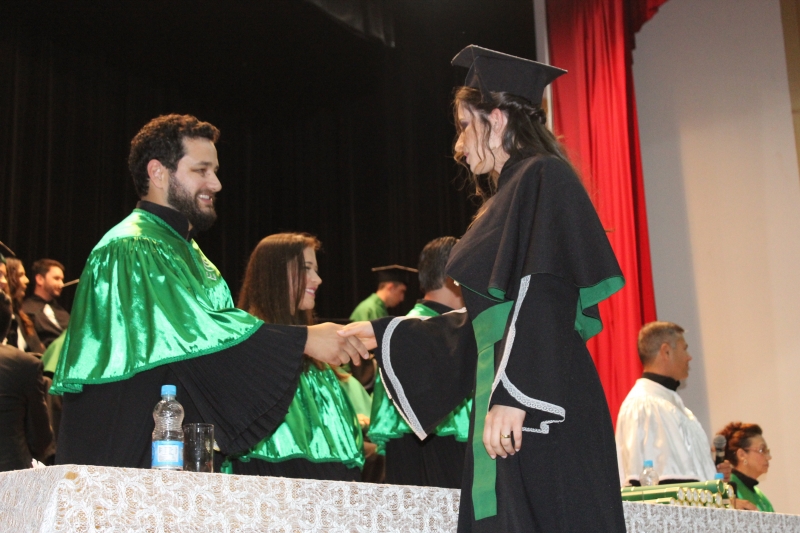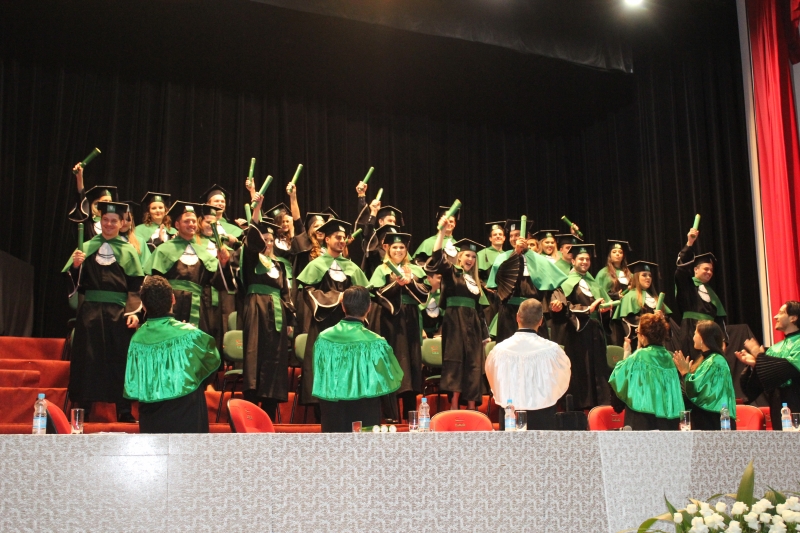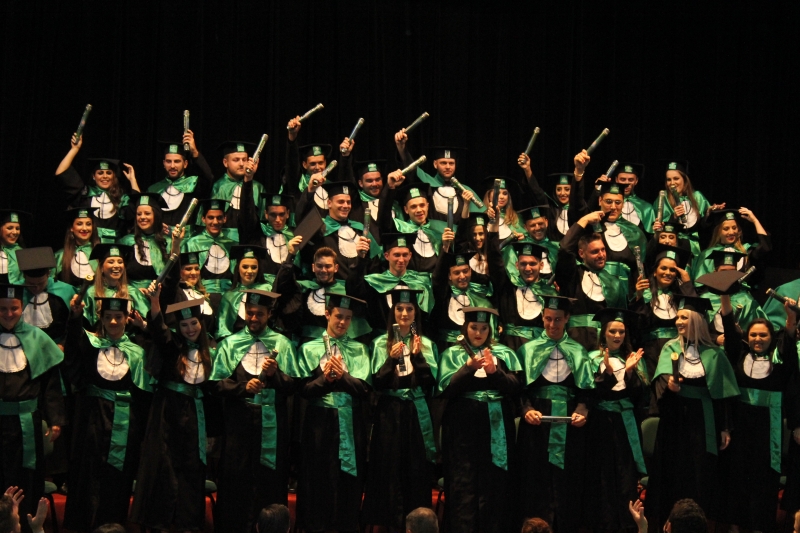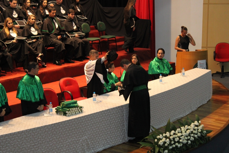 A primeira solenidade foi realizada às 17h e voltada para a turma do Integral. A turma escolheu como Paraninfo o Prof. Marcelo Morato da Silva, Patronesse a Profª. Anabella Mira e, o Prof. Edmilson Santos de Freitas como Nome de Turma. A segunda solenidade aconteceu às 20h e foi voltada para Turma I e II noturno. A turma escolheu a Profª. Laura Helena França de Barros Bittencourt como Paraninfa, Prof. Cesar Leandro Drehmer foi o Patrono e a Profª. Meiriele Monique Covatti Piassa foi homenageada como Nome de Turma. Já a turma II escolheu para Paraninfo o Prof. Marcelo Morato da Silva, como Patronesse a Profª. Vivian Fernanda Gai Valter e homenageado como Nome de Turma o Prof. Diego Lacir Froehlich. Todos compuseram a mesa de honra junto ao presidente da sessão o Vice-Reitor, Prof. Sérgio De Angelis, do coordenador, Prof. Adriano Camargo e da Secretária Acadêmica, Maria Madalena de Camargo.