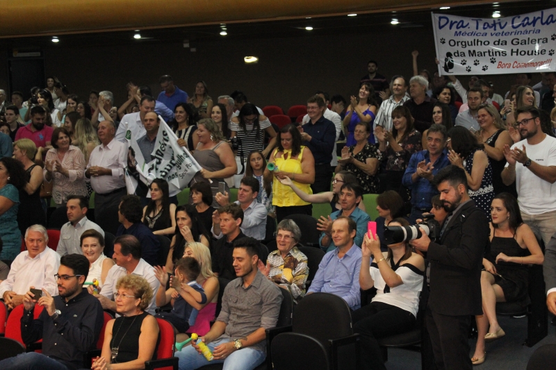 O formando Alex Porolin é de Três Barras - PR e relata que foi difícil vir todos os dias para FAG, mas que nunca pensou em desistir, e que achou que estaria mais ansioso na colação de grau. "Me sinto tranquilo e aliviado por ter chegado até aqui. Isso tudo significa o sonho da minha vida. Desde que me conheço por gente eu já sabia que queria ser Médico Veterinário. As dificuldades foram grandes, mas consegui vencê-las, e hoje toda minha família está aqui para comemorarmos juntos", expressou. O vô de Alex, Seo Aquelino Parolin, estava na primeira fila junto aos outros familiares e falou em nome de todos. "É uma emoção muito grande pra gente que acompanhou ele desde o começo. Estamos muito felizes", contou.