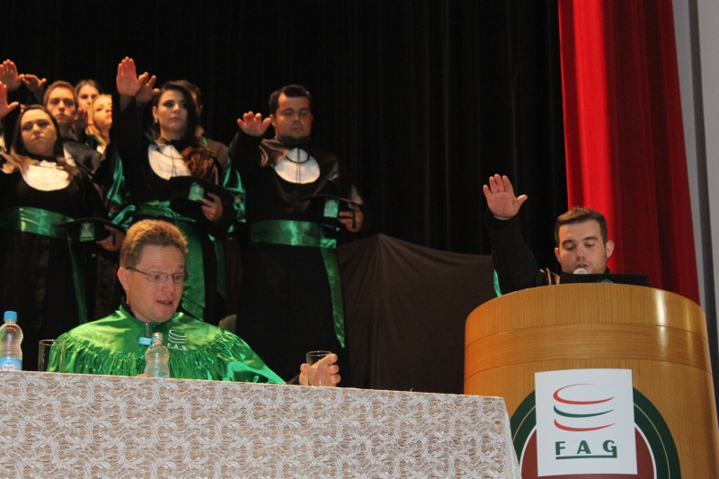 O curso de Medicina Veterinária Integral Turmas I e II noturno, do Centro Universitário FAG, formou na quarta-feira (01), 78 novos profissionais em solenidades realizadas no Anfiteatro da Reitoria. As outorgas de grau foram conferidas pelo Vice-Reitor, Prof. Sérgio De Angelis.