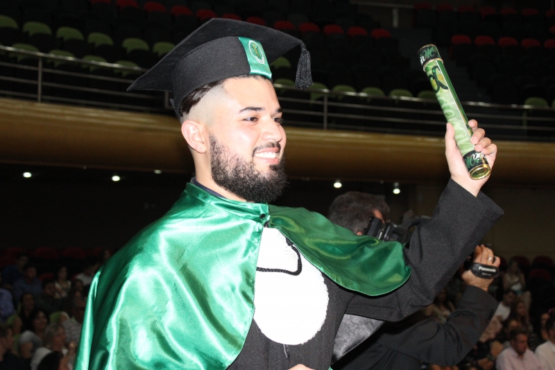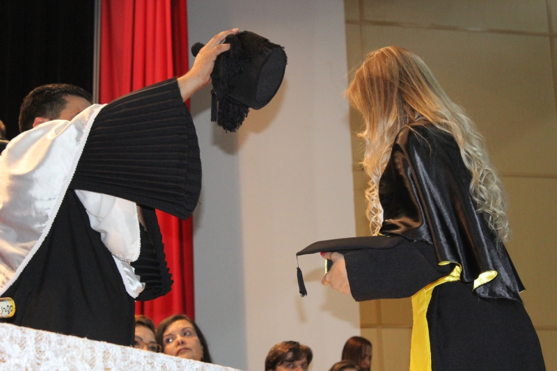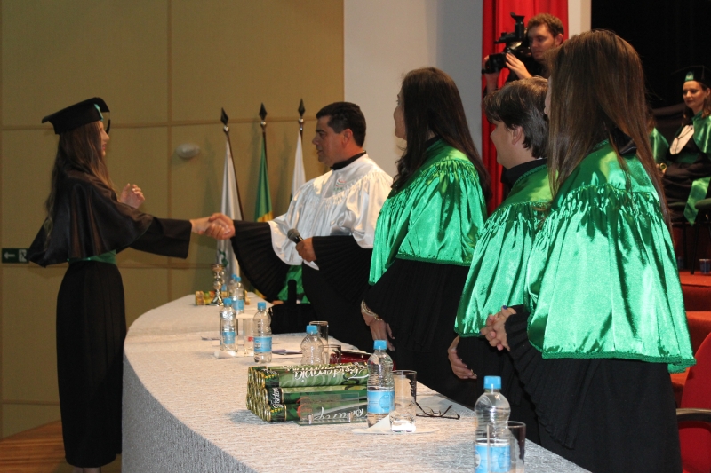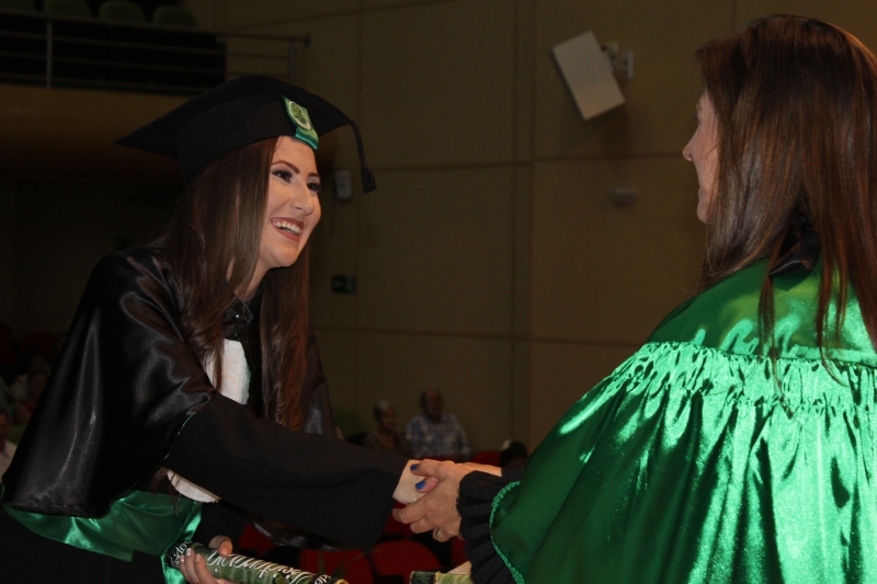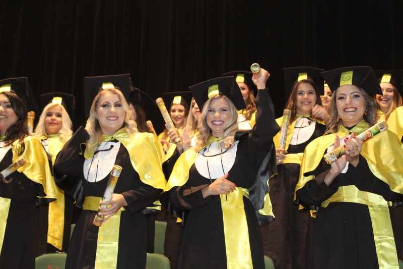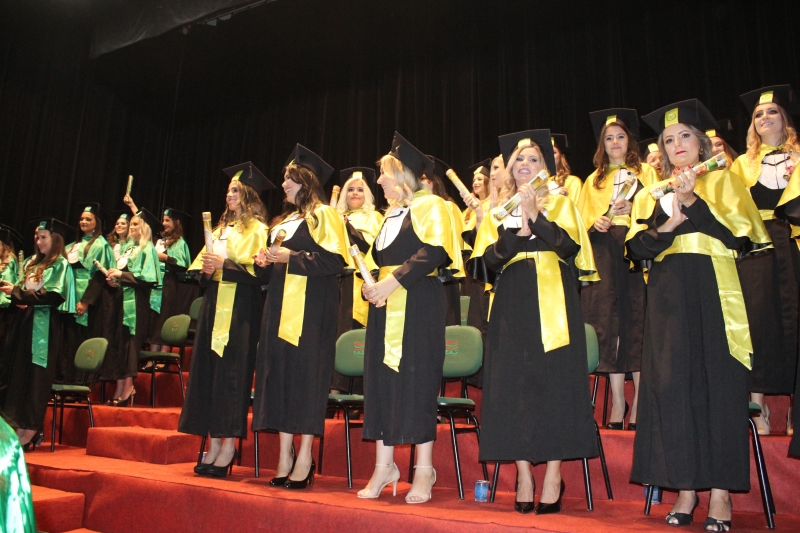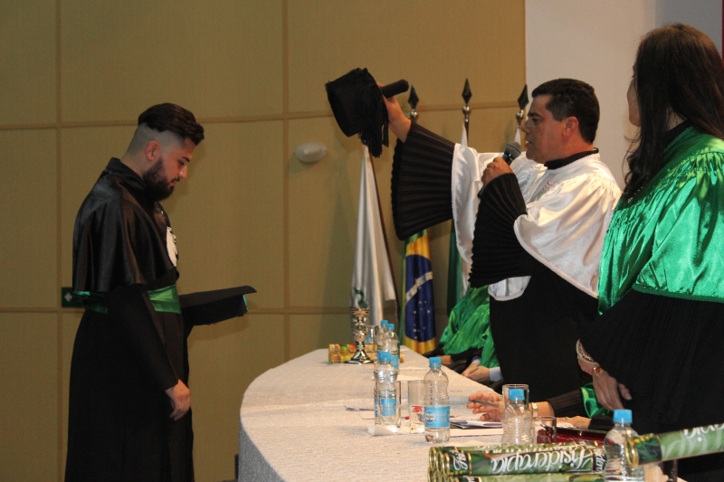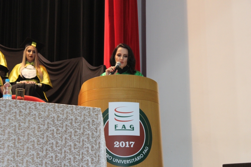 Novos bacharéis em Fisioterapia e Farmácia foram formados pelo Centro Universitário FAG. A sessão solene foi realizada na quinta-feira (02), no Anfiteatro da Reitoria, e presidida pelo Pró-Reitor Acadêmico, Afonso Cavalheiro Neto. Ele compôs a mesa de honra junto à Secretária Acadêmica, Sr.ª Maria Madalena de Camargo; a coordenadora e Paraninfa do curso de Farmácia, Profª. Patrícia Stadler Rosa Lucca; o Patrono, Prof. Giovane Douglas Zanin; o homenageado como Nome de Turma, Prof. Claudinei Mesquita da Silva, a coordenadora do Curso de Fisioterapia, Profª. Leda Paes Walcker; o Paraninfo, Prof. Cesar Antonio Luchesa, o Patrono, Prof. José Mohamud Vilagra e a homenageada como Nome de Turma, Profª. Cristina Hamerski Romero.