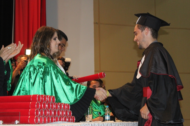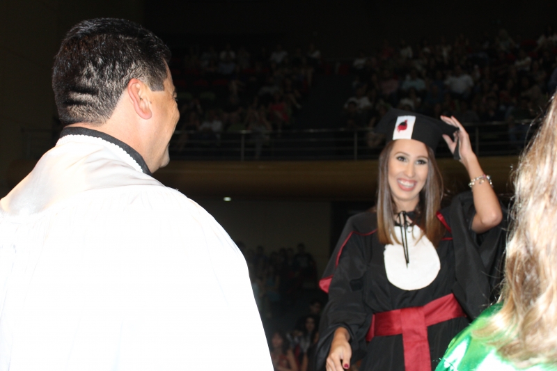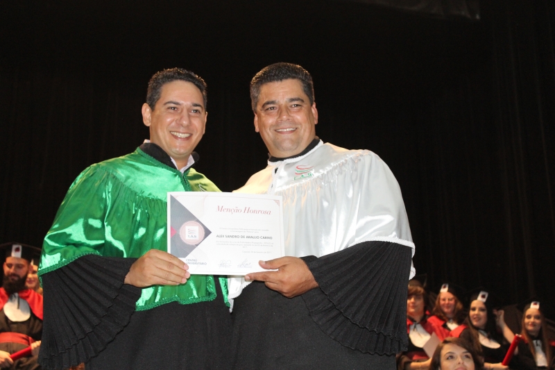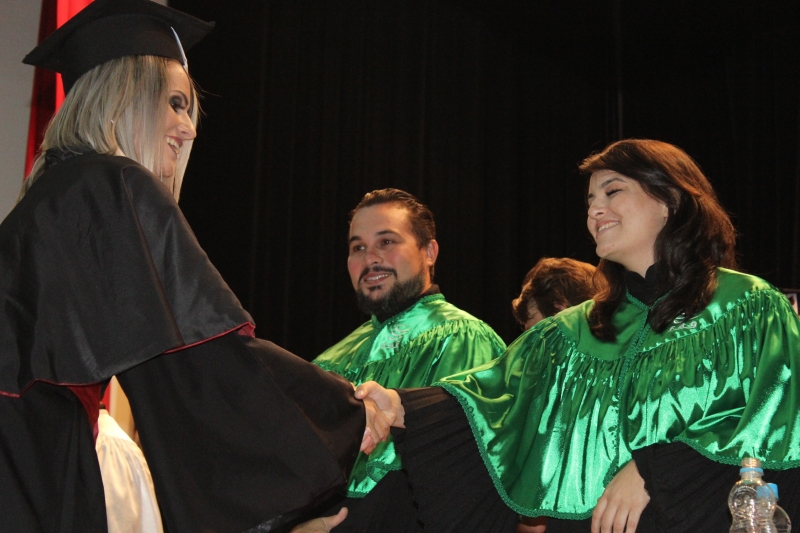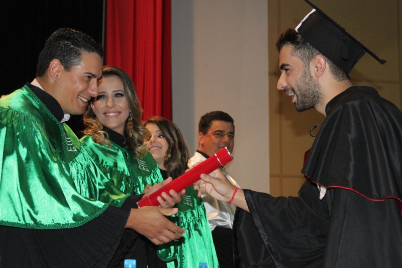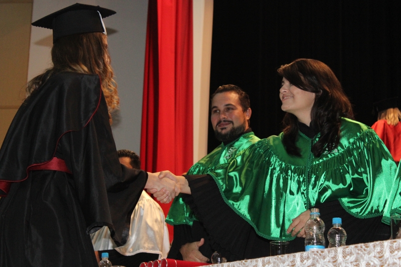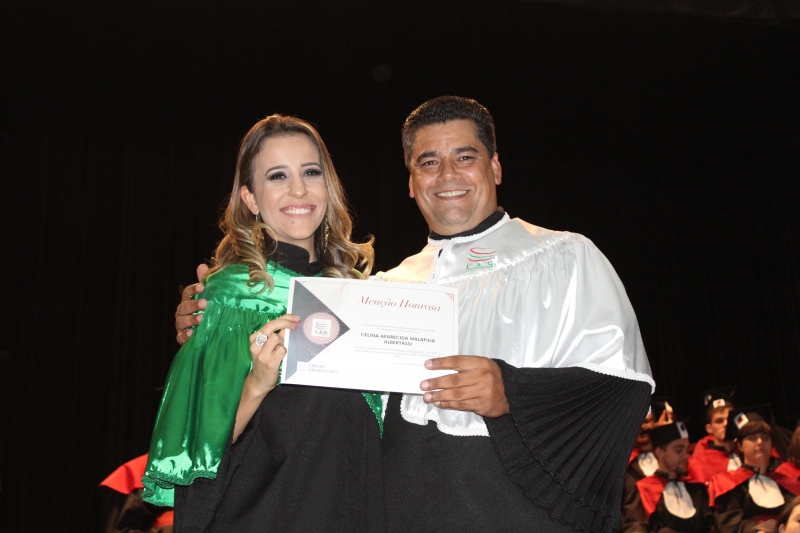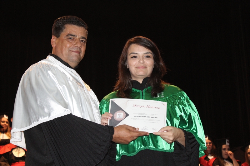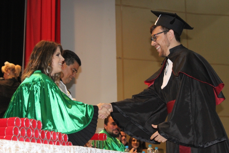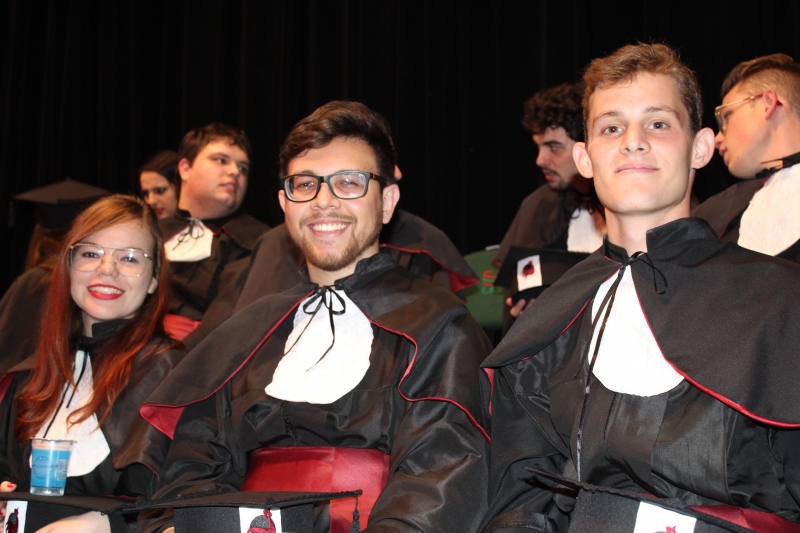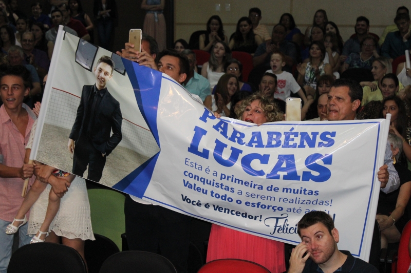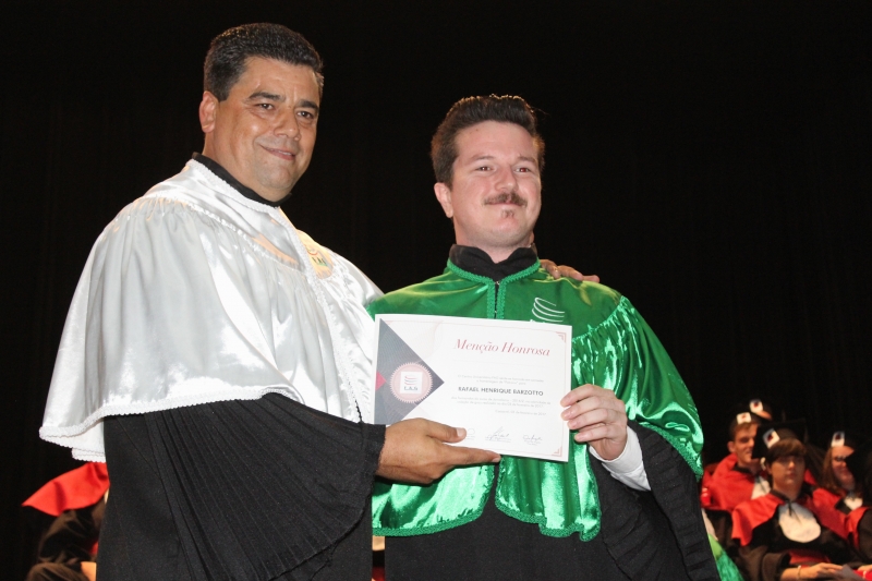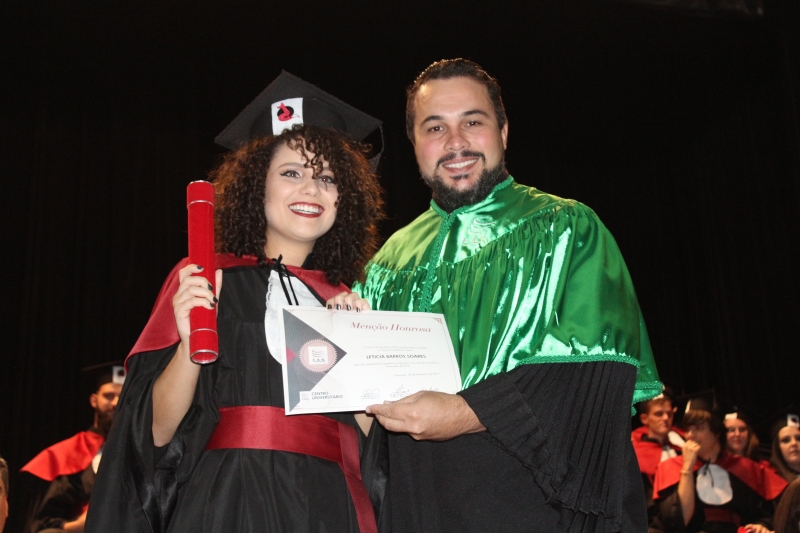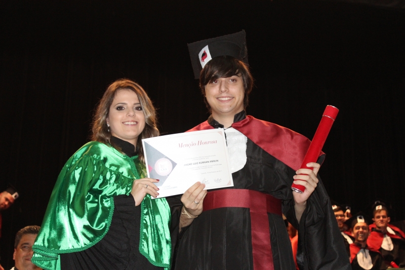 A formada Letícia Barros Soares foi homenageada com a Láurea Acadêmica, pois obteve a maior média de notas do curso de Jornalismo. "Foi muito emocionante saber que todo o meu esforço valeu a pena. Durante os quatro anos, eu me alegrei com algumas matérias, cheguei a duvidar se tinha escolhido o curso certo, mas, agora, tenho a certeza de que não poderia ser outra coisa a não ser jornalista. Ainda tenho muito estudo pela frente, mas fico feliz por ter vencido essa etapa. Eu sempre sentava na primeira carteira, anotava tudo o que os professores falavam e tentei dar o meu melhor em todas as matérias. Fico muito feliz com a láurea, porque consegui terminar o curso que eu amo com um reconhecimento especial pela minha dedicação!", comemorou. Já no curso de Publicidade e Propaganda, o formado André Luiz Kurman Merlin foi o homenageado com a Láurea Acadêmica.