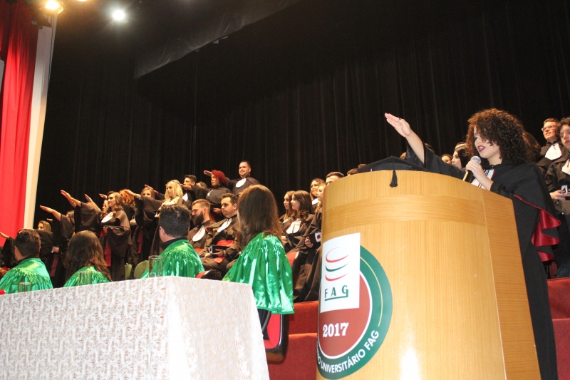 Pais, amigos e familiares dos formandos dos cursos de Publicidade e Propaganda e Jornalismo do Centro Universitário FAG se reuniram na noite de sexta-feira (03), no Anfiteatro da Reitoria, para celebrarem juntos a formatura.
