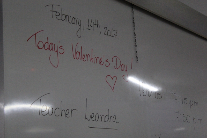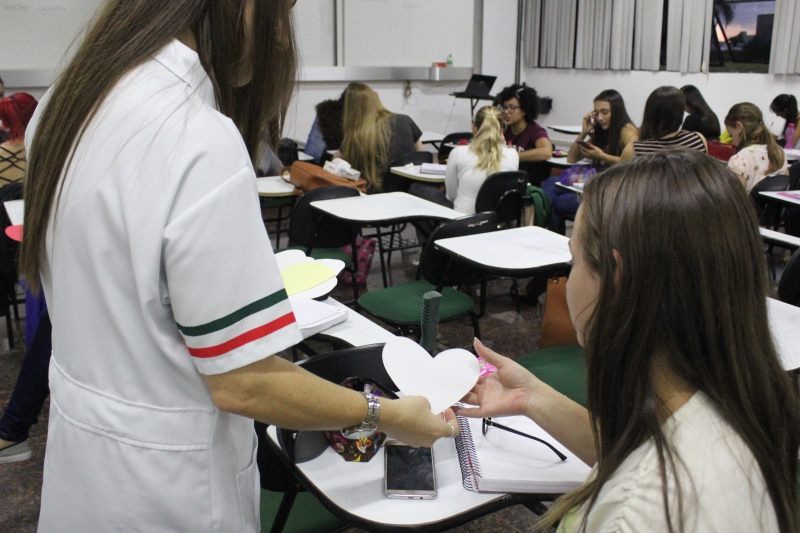 Depois de conhecer a data comemorada por enamorados em vários cantos diferentes do planeta, os acadêmicos receberam recortes em forma de coração nos quais escreveram suas mensagens de amor. "A intenção da mensagem não foi só para que tem namorado ou marido; 'Valentine' s Day" é uma data para ser comemorada por todos aqueles que provam o sentimento 'amor', que pode ser pelo pai, mãe, filho, amigo e etc.", finalizou Leandra.