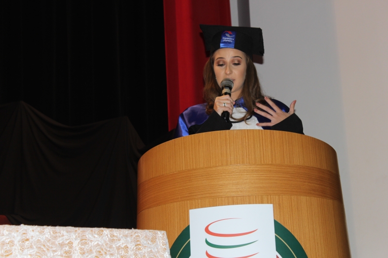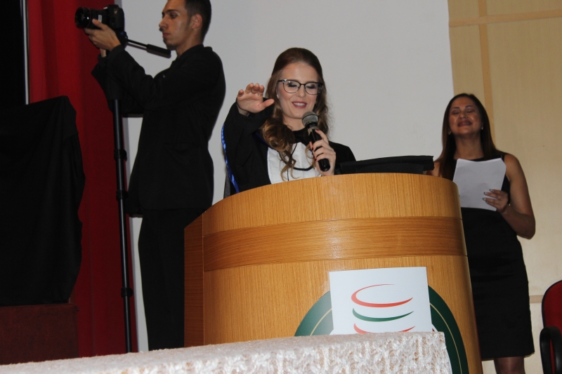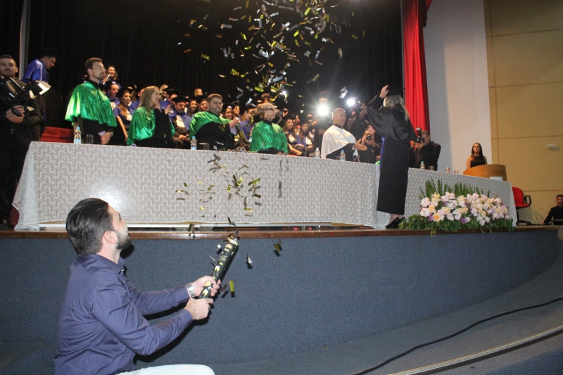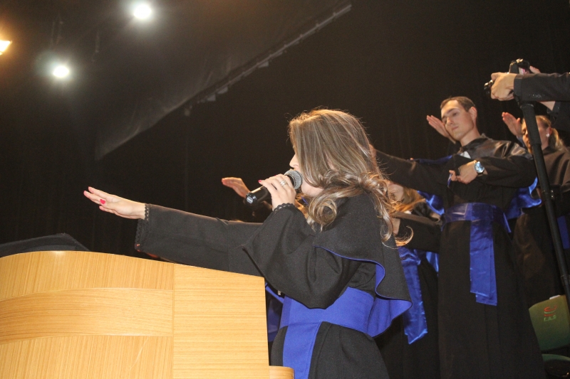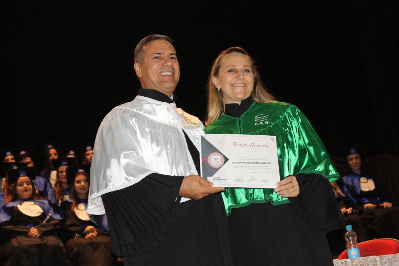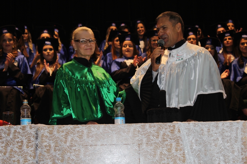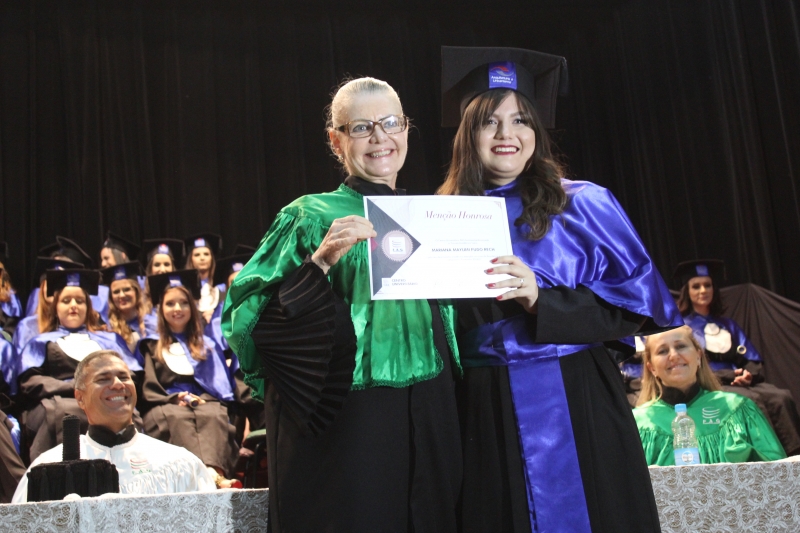 Isabella Pascotto Ferrari homenageou os pais e a formada Nayara Pessatto fez a homenagem aos mestres. A coordenadora, Solange Irene Smolarek Dias, realizou a entrega das láureas acadêmicas às formadas Mariana Mayumi Fudo Rech e Renata Franzói de Carvalho, pois obtiveram a maior média das turmas.