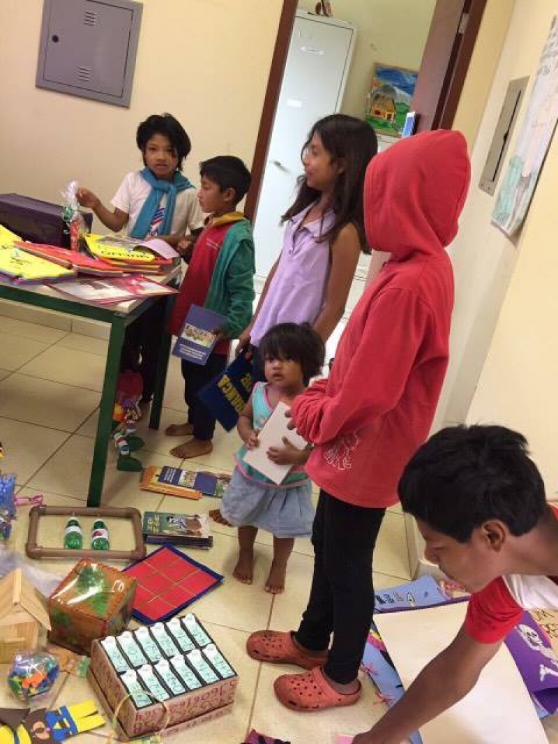 No mês passado, foram entregues materiais produzidos nas disciplinas de Literatura Infantojuvenil e Oficina de Produção de Material Didático. Além disso, recebeu uma caixa de chocolate. Na sequência, mais doações serão realizadas. O 4º período do curso está arrecadando alimentos, roupas, calçados, livros, gibis, além de mais materiais didáticos. Interessados em ajudar, podem entrar em contato com a Coordenação do curso, pelo telefone: (45) 3321-3971.
