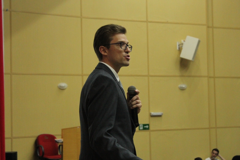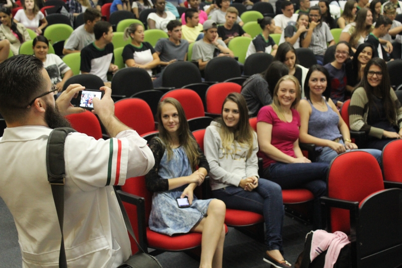 O palestrante Arthur da Igreja soube despertar a curiosidade no público com um rico currículo e histórias de visitas a mais de 350 cidades de diferentes países. Ele compartilhou experiências e falou sobre o período acadêmico. "É muito bom voltar aqui e falar um pouco da minha trajetória. Quando falo das minhas viagens quero mostrar pra eles o ritmo acelerado das mudanças que estão acontecendo no mundo, precisamos estar prontos sempre", declara. Após a palestra os acadêmicos saíram encantados do Anfiteatro. "As palavras dele nos motivaram. Gostei muito, estamos saindo diferentes daqui hoje, nos instiga a não parar de lutar e acreditar", contou a acadêmica de Psicologia, Luisa Eduarda Tidres.