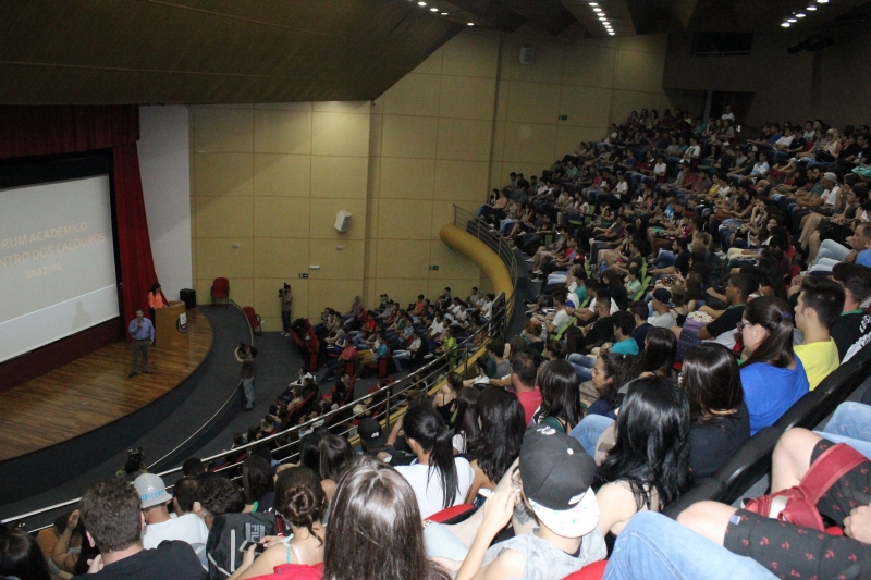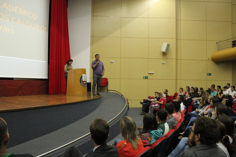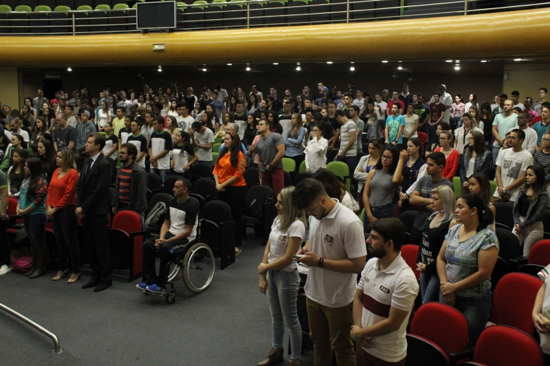 Os novos acadêmicos do Centro Universitário FAG e Faculdade Dom Bosco participaram da "Recepção dos Calouros" realizada nos dias 13,14 e 15 de março no Anfiteatro da Reitoria. Por conta do grande número de alunos, os cursos foram divididos em três grupos. Os estudantes acompanharam a palestra motivadora do egresso de Engenharia de Controle e Automação, Arthur Schuler da Igreja, além de conhecerem as Atléticas do Centro Universitário, a Direção, coordenadores e professores.