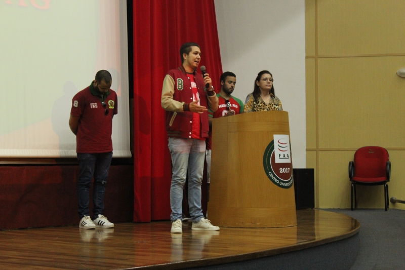 Representantes das Atléticas de cada curso se apresentaram aos novos alunos e fizeram o convite para participarem dos eventos realizados por eles. Rodrigo Cruz é representante do curso de Administração e falou dos trabalhos realizados através da Atlética e seus benefícios. "Buscamos atender à comunidade com diversos projetos é uma forma de interagir a FAG, acadêmico e sociedade. Lembrando que, não é só festas e jogos, e o associado tem suas vantagens", explica.