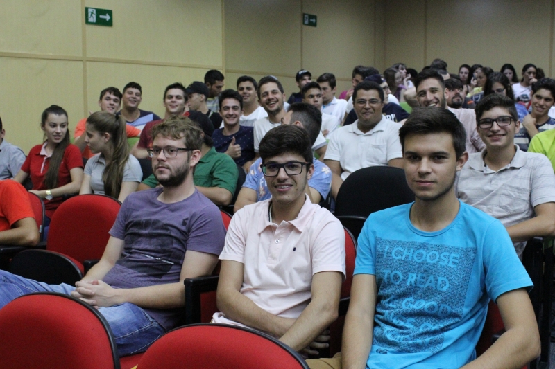 Os calouros participaram da palestra motivadora realizada pelo egresso de Engenharia de Automação e Controle, Arthur Schuler da Igreja