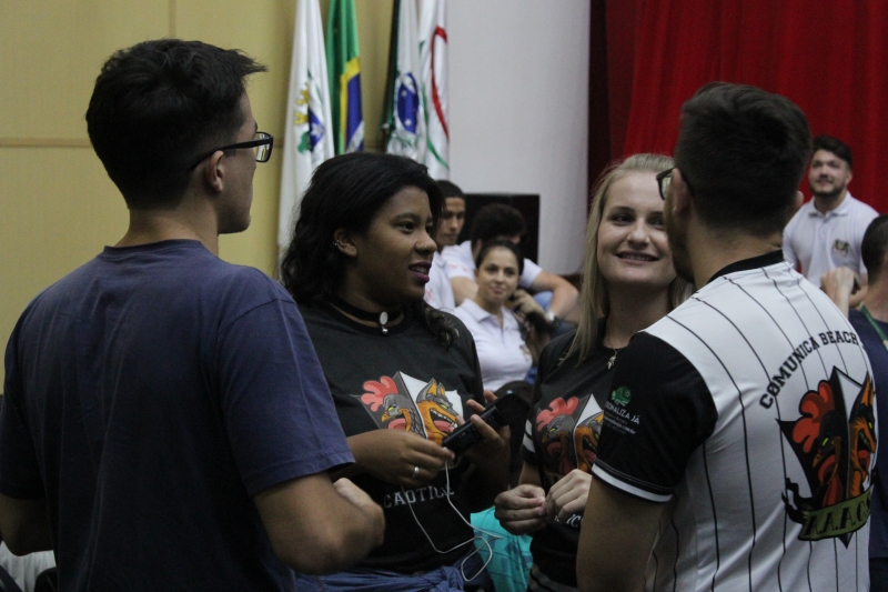Primeiro ano e diferentes expectativas entre os calouros. Barbara Oliveira, que ingressou no curso de Fisioterapia, confessa que se sente um pouco insegura. "Imaginamos muitas coisas, e será que vou conseguir? Estou gostando muito do curso e curiosa pra conhecer mais", relata. Patrícia Radaelli, coordenadora do NAAE (Núcleo de Apoio ao Estudante), explica que essa atividade é realizada após um período do início das aulas. "Entendemos que nos primeiros dias de aula os alunos precisam ter contato com questões específicas do curso e, depois desse período, é importante que participem de ações institucionais. Esse foi um evento de acolhimento e integração. Os alunos participaram de reflexões importantes sobre o período de formação, sobre o contexto social atual, com as falas do nosso Vice-Reitor, do Pró-Reitor Acadêmico e do palestrante convidado, que é nosso egresso. E também vivenciaram momentos de descontração, com a programação das Atléticas, com o lançamento dos Jogos dos Calouros e o trote solidário, além de sorteios de brindes com a participação dos coordenadores e professores de curso".
