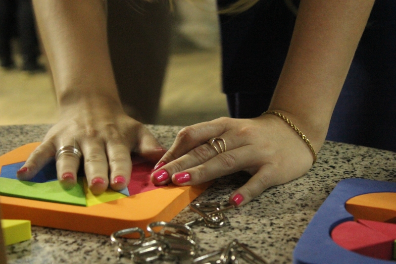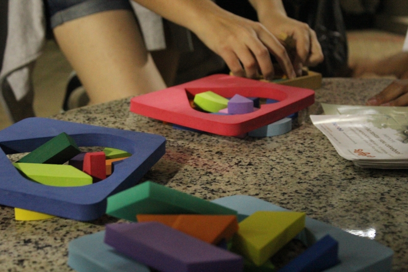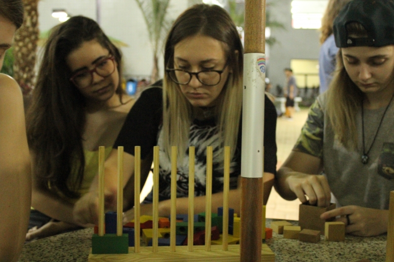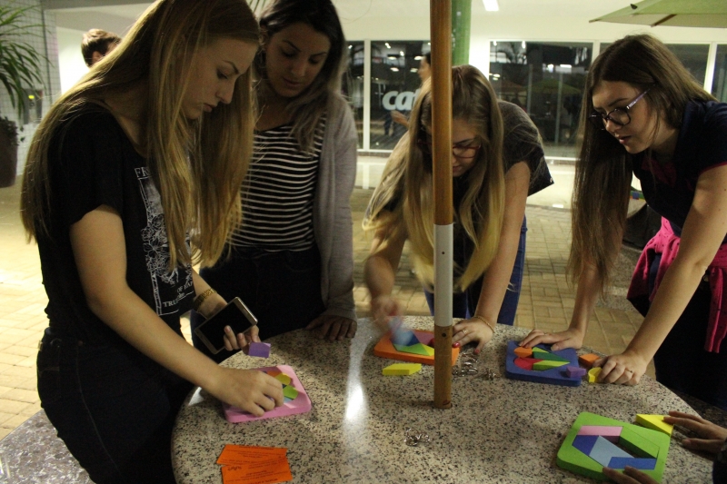 A partir desta campanha, acadêmicos de todos os períodos do curso de Psicologia, com orientação da professora Patrícia Schnaufer, organizaram diversas práticas lúdicas e aplicaram para a comunidade acadêmica nos intervalos das aulas dos períodos matutino e noturno, a cada dia em um bloco diferente. "Gostei muito da ideia, são atividades que nos estimulam. Não consegui terminar todos os exercícios, mas faz com que fiquemos ali tentando até conseguir", relata a acadêmica do 3º período de Psicologia, Helena Gurgacz.