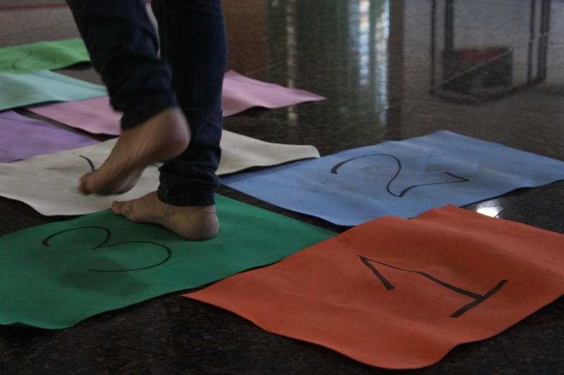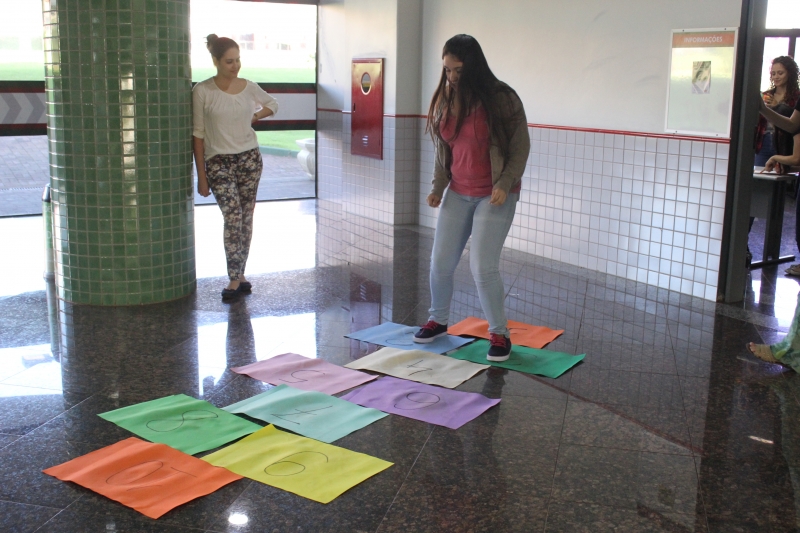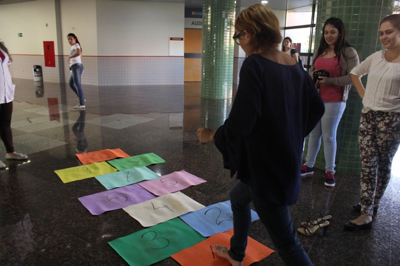 Entre os diversos jogos disponíveis tinha a "amarelinha", parecia até brincadeira de criança, mas não tão fácil quanto. Para aqueles que aceitaram o desafio não foi fácil pular de 1 a 10 contando de 20 a 0, ou seja, foi preciso agilidade, rapidez e concentração para pular e contar ao contrário sem se perder. "As pessoas se confundiram bastante, poucos conseguiram completar a prova. Não é fácil associar os movimentos do corpo falando ao mesmo tempo", disse a acadêmica do 9º período, Vanessa Campos. A acadêmica Vanessa Carvalho, também do 9º período, complementa dizendo que todos os exercícios são para favorecer o cérebro. "Essas atividades são para instigar a coordenação motora, pensar em uma e coisa e realizar outra com objetividade", disse.