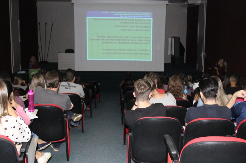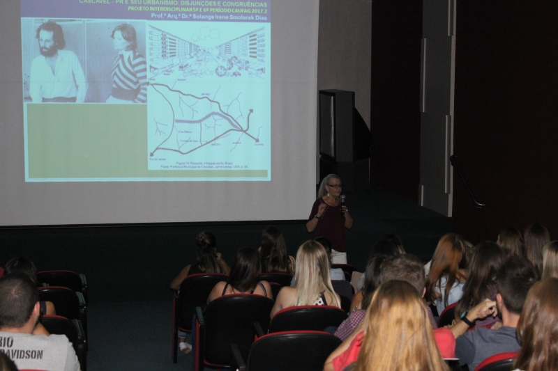 A coordenadora do curso, Solange Smolarek Dias, foi convidada pelos professores para conduzir a atividade relatando o histórico do planejamento urbano de Cascavel. "Fico grata aos professores Moacir, Sandra e Guilherme, por me convidarem para poder repassar aos alunos minha experiência como urbanista, em especial na cidade de Cascavel. Sinto que os alunos gostam da fala, pois os inspira para um olhar mais apurado sobre a cidade em que vivem e/ou estudam", relata.