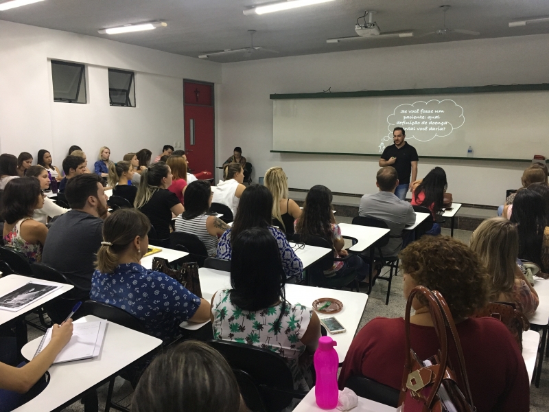 Acadêmicos do 3º, 5º, 7º e 9º períodos, Matutino e Noturno, do curso de Psicologia do Centro FAG participaram nos dias 28 à noite e 29 no período da manhã, da palestra "Patologias: Expectativas Terapêuticas e Vivências" com o enfermeiro, Evandinei Dal Molin. A atividade faz parte da disciplina de Psicopatologia, lecionada pelos professores Silvio Araujo Vailões e Adriana Garbin.
