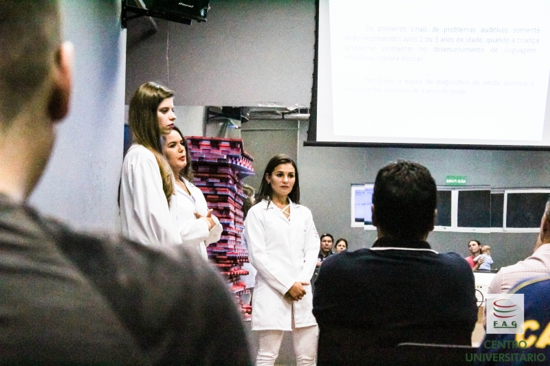 Já as acadêmicas de Fonoaudiologia explicaram sobre a importância dos pais estarem alertas ao teste da orelhinha em seus bebês. "Quando os pais estão informados eles têm mais poder para exigir o teste que é obrigatório. E é muito importante para que os problemas possam ser localizados de forma precoce", conta a professora de Fonoaudiologia, Celline Obermeier.
