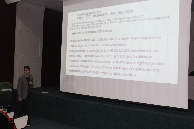 O encerramento da Semana Acadêmica ficou por conta da arquiteta, Silvia Pedroso Chavier, que trouxe o tema "Manual de Mostra'. O acadêmico do 3º período, João Paulo Michels descreve a Semana como uma oportunidade para descobrir o que o mercado de trabalho exige. "Conseguimos ter uma visão ampla de tudo. Foi muito legal o contato com os profissionais e as dicas que eles deram de como começar na profissão", conta. "Esse foi um momento para agregar conhecimentos, falar do mercado de trabalho e de oportunidades. Profissionais de renome participaram desse evento, contribuindo na formação dos alunos", finaliza a coordenadora do curso, Marieli Gurgacz Moreira.