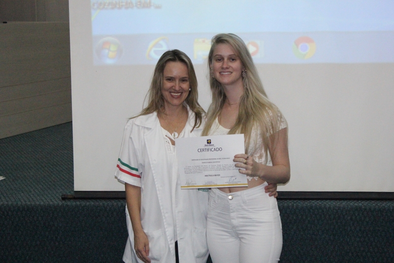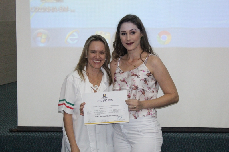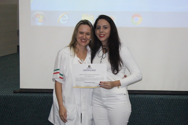 O curso de Estética e Cosmética da Faculdade Dom Bosco realizou ontem (24), no Auditório do Bloco IV, a entrega de 33 Certificados Intermediários. "A partir desse momento elas estão aptas para trabalharem como terapeutas. O evento é uma forma de certificá-las, o próximo passo é a certificação de conclusão de curso. O objetivo do curso técnico é esse: preparar os alunos da melhor forma para o mercado de trabalho, então, é necessário passar por essa fase", explicou a coordenadora, Leda Paes Walcker.
