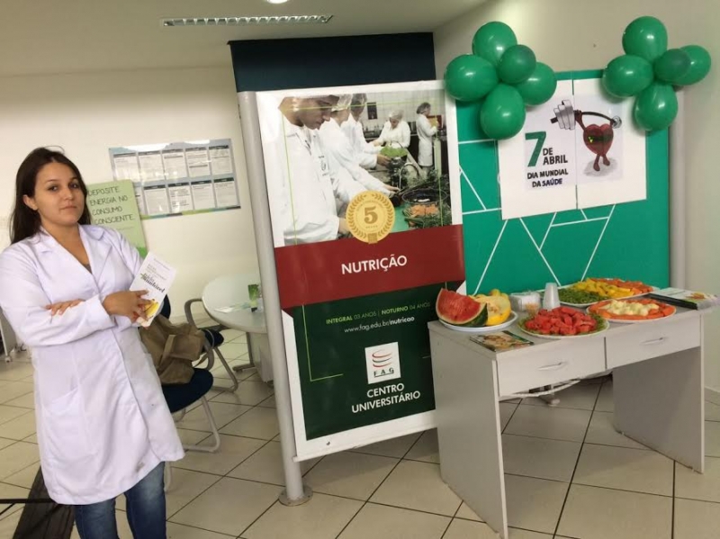 As alunas do 7º período de curso de Nutrição do Centro Universitário FAG, Stefani Rafaéli Zopellaro e Natalia Grando Vessoni, participaram de uma atividade no SICOOB em comemoração ao Dia da Saúde, lembrado em 7 de abril. Os clientes foram orientados sobre a alimentação adequada para a promoção da saúde, e as alunas exercitaram as habilidades de Educação Nutricional.