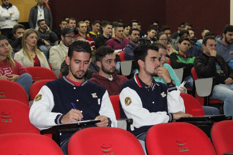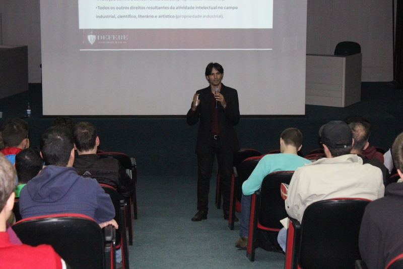 Na noite de ontem (27), acadêmicos dos cursos de Engenharia Mecânica, Engenharia Elétrica e Engenharia de Controle e Automação participaram da palestra "Propriedade Intelectual" com o diretor da Defere Gestão de Marcas, Wagner Crossatti. O encontro é uma iniciativa do TECFAG e aconteceu no auditório do Bloco IV.