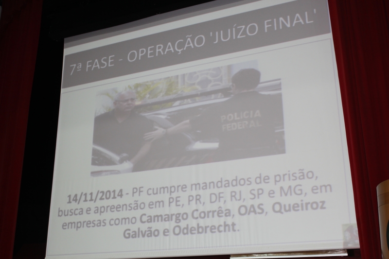 Quem abriu as discussões foi a professora Marcella Brazão. Ela abordou a história da Lava Jato. "O embrião da Operação foi em 2008, porém, o marco histórico é 17 de março de 2013. Não havia essa noção de que a investigação chegaria em 2017 e nessa magnitude. O que mais destaquei aos alunos foi o envolvimento dos três diretores da Petrobras no esquema. Para a fala, me embasei na Literatura já existente sobre o tema, com parte das sentenças, entrevistas com presos e delações premiadas", expõe.
