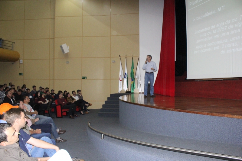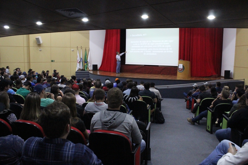 Foi dada a largada para a 11ª SEAGRO, Semana Acadêmica do curso de Agronomia do Centro Universitário FAG. Cerca de mil inscritos participaram da abertura do evento, que aconteceu ontem (02), com a palestra do Engenheiro Agrônomo PhD José Barros França Neto que falou sobre: "A semente de soja como matéria-prima para altas produtividades". "É uma satisfação muito grande pra mim. Vir até aqui conversar com os alunos sobre algo que me dedico há 42 anos: a semente. Gosto muito de filosofar quando falo... a semente é o começo de tudo, é mais que um insumo. E vou provar, a partir de pesquisas, que uma semente de qualidade, com uma matéria-prima de qualidade, faz toda a diferença no plantio", relata.