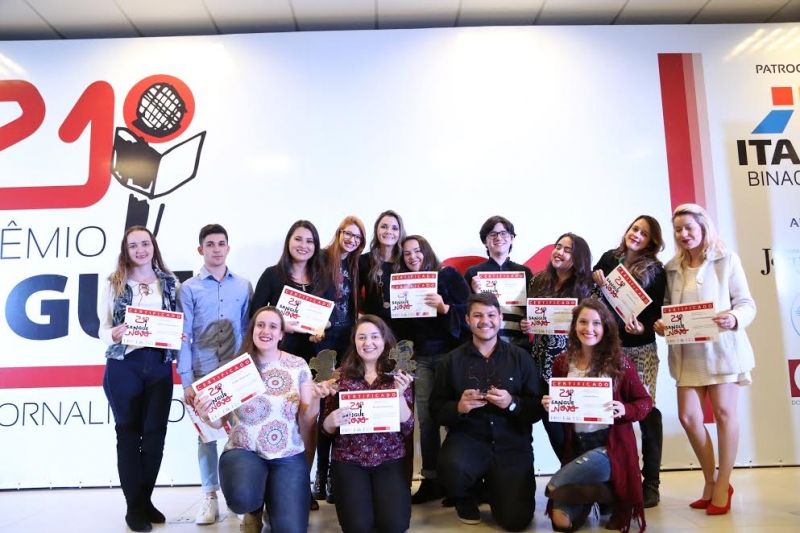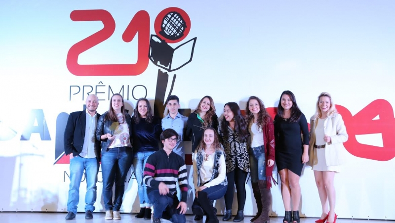 A noite de ontem (03) foi de muita festa para acadêmicos de Jornalismo do Centro Universitário FAG. Durante evento realizado em Curitiba, o curso recebeu três premiações na 21ª edição Prêmio Sangue Novo no Jornalismo Paranaense, promovido pelo Sindicato dos Jornalistas Profissionais do Paraná (SindijorPR). A disputa, que conta com a participação de Instituições de Ensino Superior de todo o Estado e teve 554 trabalhos inscritos, teve o curso da FAG como campeão nas categorias Telejornal Laboratório e Produto Jornalístico Livre, além de um terceiro lugar também na categoria Telejornal Laboratório.