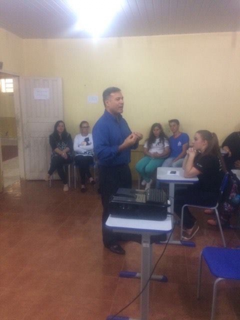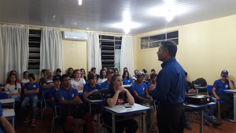 O Vice-reitor do Centro Universitário FAG, Sérgio De Angelis, e a Coordenadora dos cursos de Fisioterapia e Estética e Cosmética, Leda Paes Walker visitaram o Colégio Estadual do Campo Otávio Folda, no distrito de Guaporé, município de Guaraniaçu. O encontro foi realizado com os alunos e teve o intuito de ajudar os estudantes na escolha profissional.