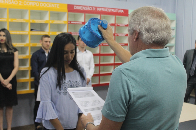 Mais uma colação de grau especial acaba de ser realizada na FAG Toledo. Os formandos, amigos e familiares convidados para a cerimônia foram recepcionados na sala de reuniões do Bloco I pelo diretor da instituição, Ildo Bombardelli.