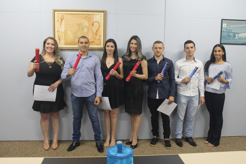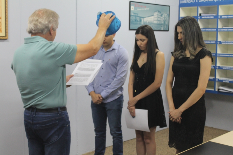 O acadêmico Jean Marcos Jager Holderbaum recebeu o grau de tecnólogo no curso de Gestão do Agronegócio. A acadêmica Tânia Pereira de Oliveira recebeu grau de tecnóloga em Gestão de Recursos Humanos. O acadêmico Diego Arruda Siebeneicler recebeu grau de bacharel em Administração após confirmar o juramento do curso. O acadêmico Rafael de Jesus Gomes e as acadêmicas Tatiane de Oliveira Ramaldes e Franciele Aparecida Pereira da Silva receberam o grau de bacharéis em Ciências Contábeis. A acadêmica Marieliza Devequi Campra recebeu grau de bacharel em Direito. Após cada concessão o professore Gilmar José Camargo entregou os certificados de conclusão de curso representando os coordenadores de todos os cursos envolvidos.
