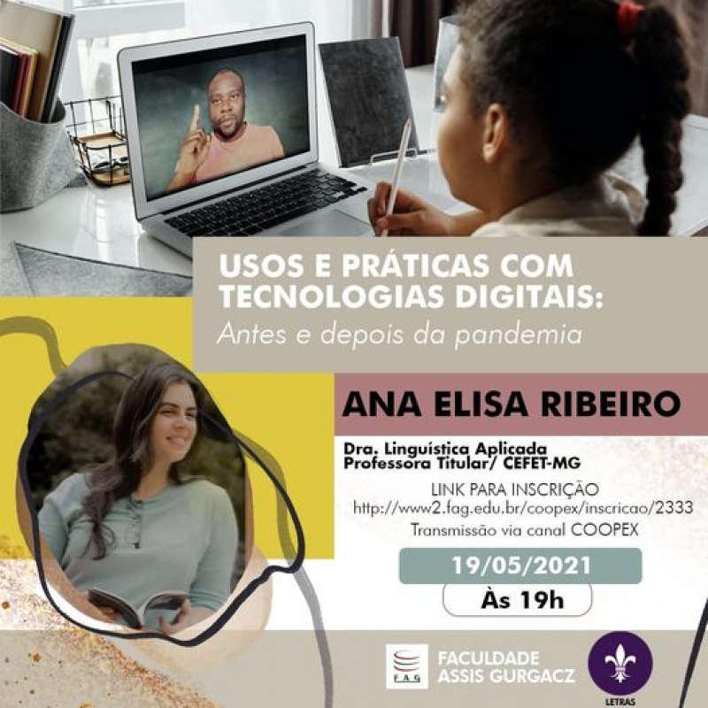 A palestrante convidada é a professora Ana Elisa Ferreira Ribeiro, que tem Doutorado em Estudos Linguísticos pela Universidade Federal de Minas Gerais e é professora titular do Centro Federal de Educação Tecnológica de Minas Gerais. "A professora convidada possui larga experiência na área da linguagem e da tecnologia e trará significativa contribuição aos estudos dos alunos, bem como dos professores que atuam nas redes municipal e estadual de ensino", afirma Janice.